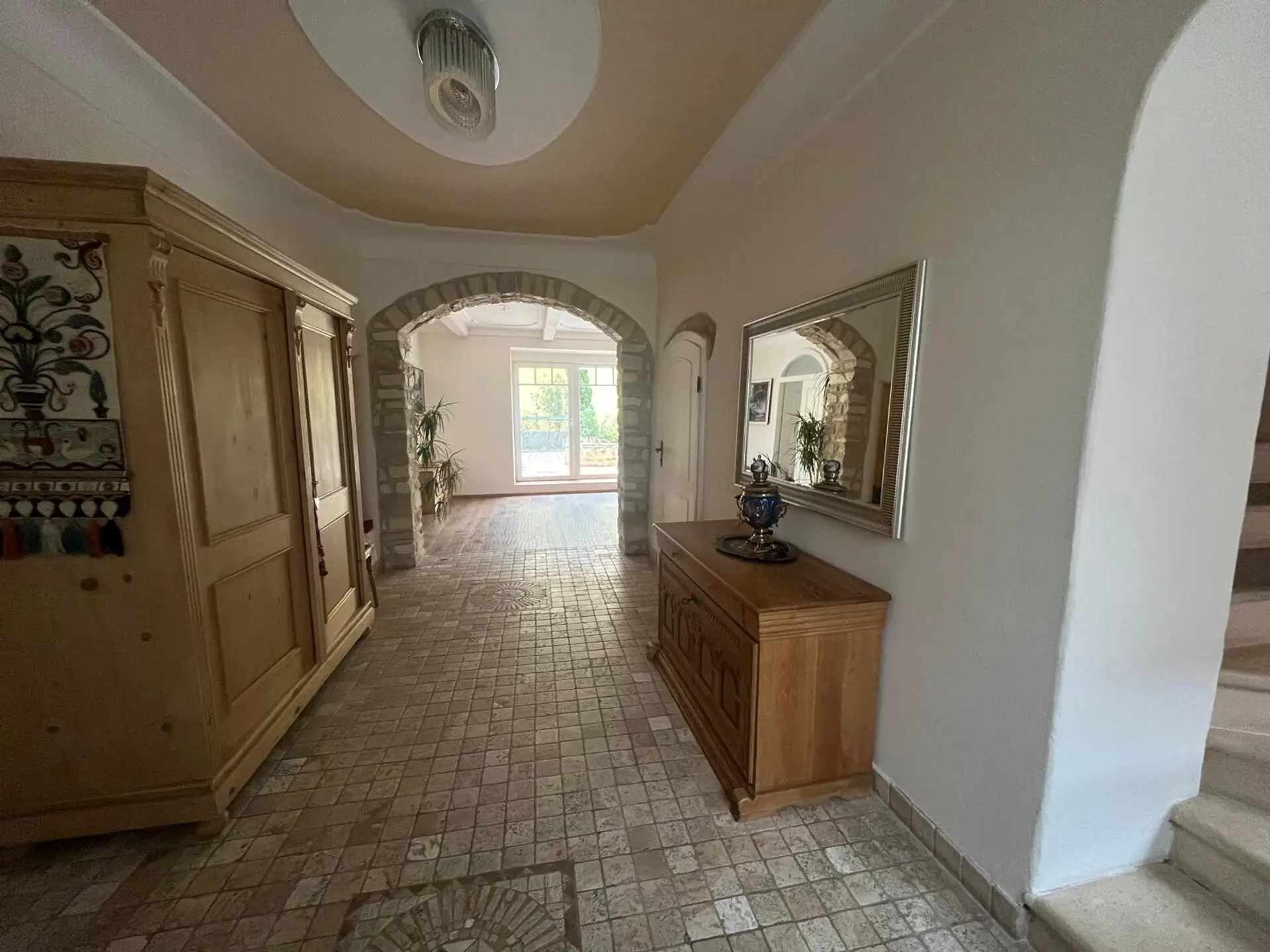 Heizung und Warmwasser: + Fußbodenheizung, teilweise Wandheizung, teilweise Heizkörper + Gastherme + Heizkessel Holz von Fröhling + Wärmepumpe für Warmwasser mit 1000L Speicher Fenster und Beschattung: + Kunststoff-Fenster 3- Fachverglasung, erhöhte Schalldämmung straßenseitig und OG-Fenster mit Kindersicherung + Sonnenschutz mit automatischen Raffstores, Zentral- und Einzelsteuerung Indoor Swimmingpool: + Maße: 10m x 2,6m x 1,5m + Wärmepumpe + vollautomatischer Filteranlage + automatische Wassernachfüllung + elektrische Poolabdeckung + Poolroboter + Poolhaus mit Wetterfühler, Entfeuchtungsanlage, Fussbodenheizung, Klimaanlage + Anschlüsse für Sauna und Dampfkabine Sonstiges: + Brunnenschacht: Wasserpumpe mit automatischen Betrieb, 8 Wasserentnahmestellen, Brunnenwassersteuerung im Sommer für Pool, Waschmaschine und Outdoortoilette + elektrischer Türöffner mit Video Funktion und 2 Inneneinheiten EG+OG + Aufwändige Außenbeleuchtung + Swarovski – Beleuchtungskörper + Weinpresse im Gewölbekeller + Satellitenanlage + Obstgarten mit 33 verschiedenen Obstsorten (im Alter von 4 - 15 Jahre)